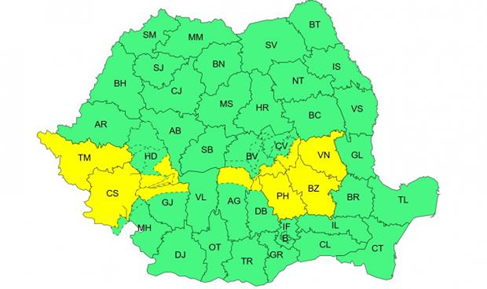 Noaptea de joi spre vineri va aduce în Moldova și estul Transilvaniei lapoviță și ninsoare, iar poleiul se va menține pe alocuri. La munte, la altitudini de peste 1.500 m, ninsorile vor fi predominante, iar stratul de zăpadă se va depune semnificativ. În zonele montane, rafalele de vânt vor depăși 80–90 km/h, viscolind zăpada și reducând vizibilitatea sub 100 de metri. În județele Caraș-Severin și Timiș, vântul va atinge 50–70 km/h, iar în Munții Banatului și în zonele înalte din vestul Carpaților Meridionali rafalele vor ajunge la 90–100 km/h.