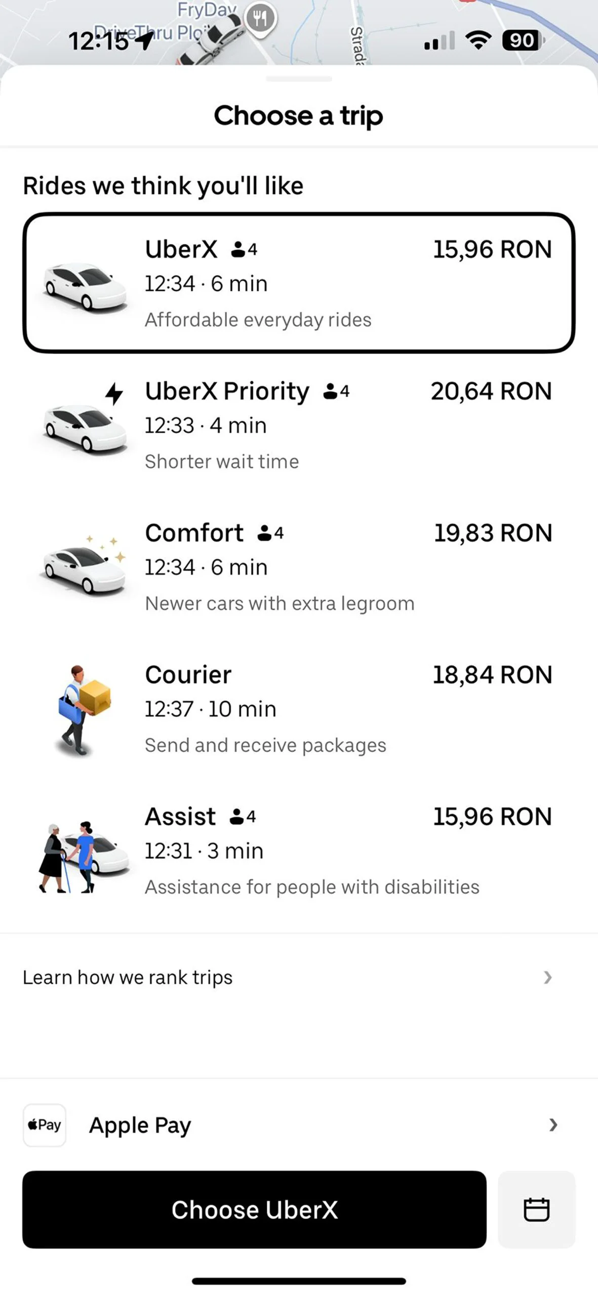 Prețurile de mai jos sunt specifice pentru o zi de vineri ploioasă, în jurul orei 12, lucruri ce pot determina prețul curselor.
