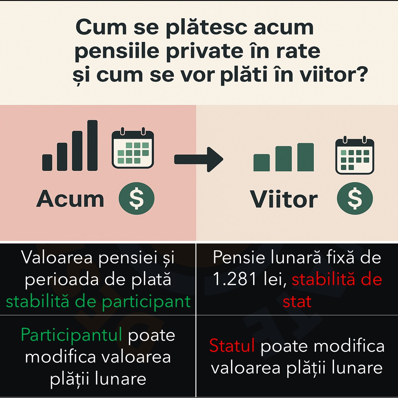 În prezent, legea stabilește doar limite minime pentru suma lunară și durata de plată. În rest, fiecare participant poate să decidă cât vrea să primească lunar. Această flexibilitate permite ajustarea pensiei în funcție de nevoile financiare personale.