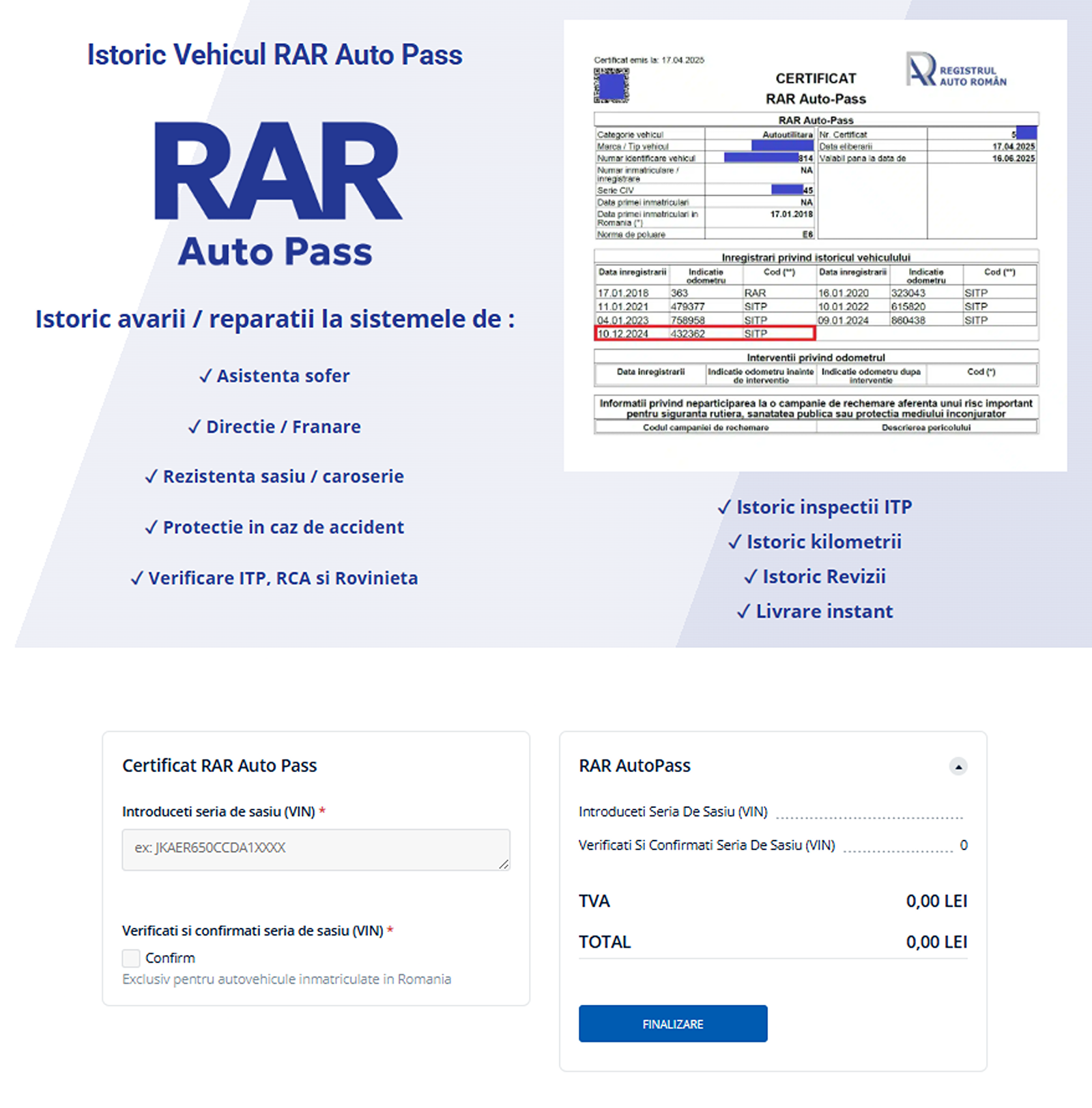Dacă sistemul identifică date despre mașină, solicitantul este redirecționat către pagina de plată, iar după confirmarea acesteia, certificatul este transmis prin email. De asemenea, documentul poate fi descărcat direct din platforma RAR Auto-Pass imediat după efectuarea plății sau ulterior, pe durata celor 60 de zile de valabilitate a certificatului.