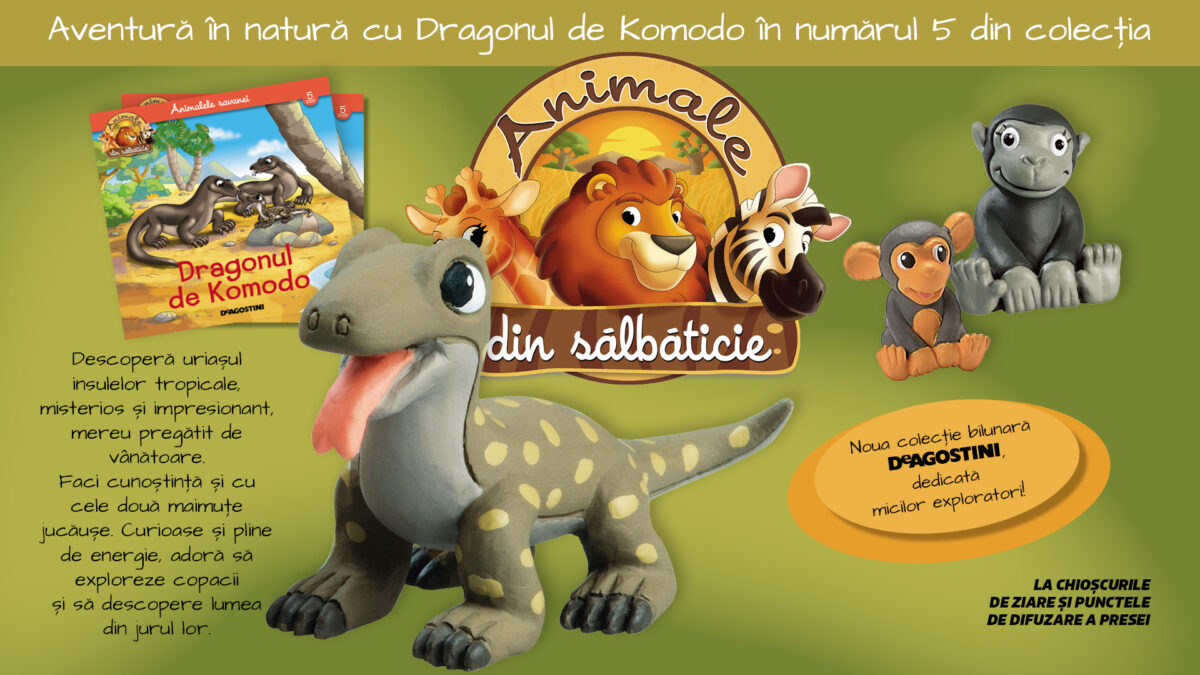 Disponibil de marți, 9 decembrie, la toate chioșcurile de ziare și la punctele de difuzare a presei, alături de trei figurine: Dragonul de Komodo și două maimuțe jucăușe, numai în colecția Animale din sălbăticie de la DeAgostini. Preț: 29,99 lei