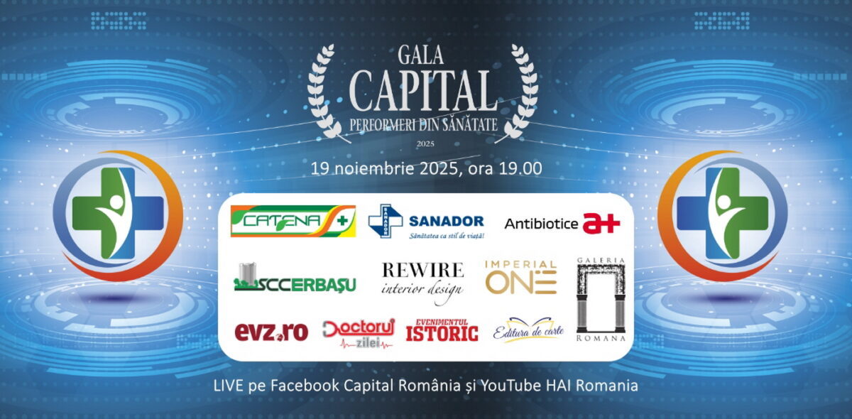 Gala Capital Performeri din Sănătate va avea loc miercuri, 19 noiembrie 2025, începând cu ora 19.00, la Club ONE din București și va fi difuzată în direct și pe Facebook Capital România și pagina de Youtube Hai România.