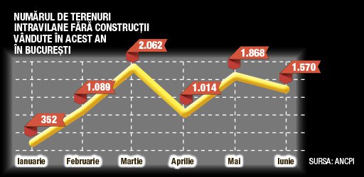 În primul semestru al acestui an s-au vândut aproape 8.000 de terenuri intravilane fără construcţii în Bucureşti, în luna martie depăşindu-se 2.000 de tranzacţii, potrivit datelor Agenţiei Naţionale de Cadastru şi Publicitate Imobiliară (ANCPI). Cele mai importante nouă loturi, a căror tranzacţionare a devenit publică în prima parte a acestui an, cumulează o suprafaţă de 35 de hectare şi o valoare de peste 83 mil. euro, echivalentul a circa 65% din volumul valoric al anului trecut, potrivit calculelor Capital. Evoluţia primului semestru indică spre depăşirea valorii înregistrate în 2016.