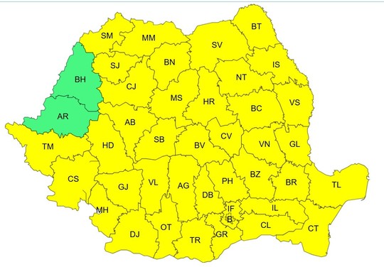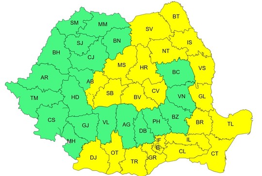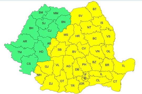 Cod galben de ger luni: temperaturi extreme în Moldova, Transilvania și sudul țării
