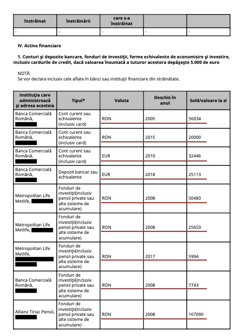 Documentele oficiale indică, de asemenea, existența unor economii consistente, incluzând conturi și depozite bancare de peste 80.000 de euro, precum și fonduri de investiții evaluate la aproximativ 315.000 de lei. Aceste date sunt publice și fac parte din obligațiile de transparență impuse magistraților.