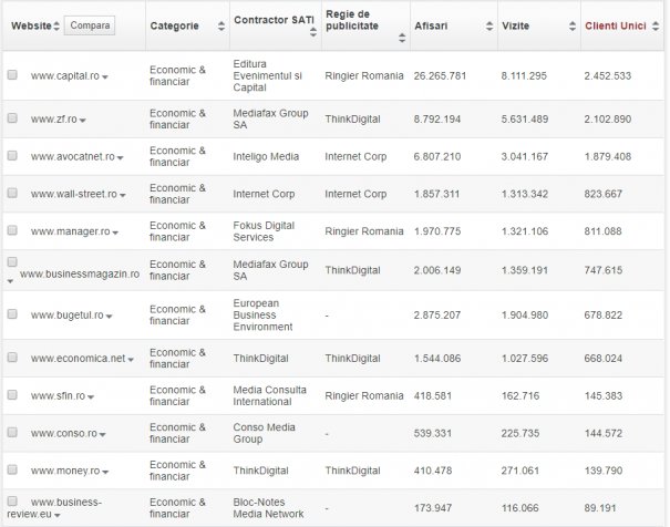 Conform măsurătorilor, numărul de vizitatori unici a depăşit cu 350.000 audienţa înregistrată de zf.ro, principalul competitor. Celelalte publicații economice din România au reușit să atragă sub 1 milion de vizitatori unici pe lună.