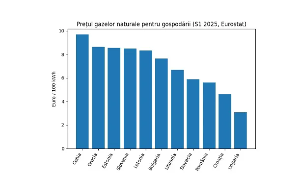 România se află în grupul statelor cu cele mai mici prețuri la gaze din Uniunea Europeană, fiind depășită doar de Ungaria și Croația. Diferența față de media UE este semnificativă, iar nivelul este aproape la jumătate față de state precum Cehia sau Grecia.