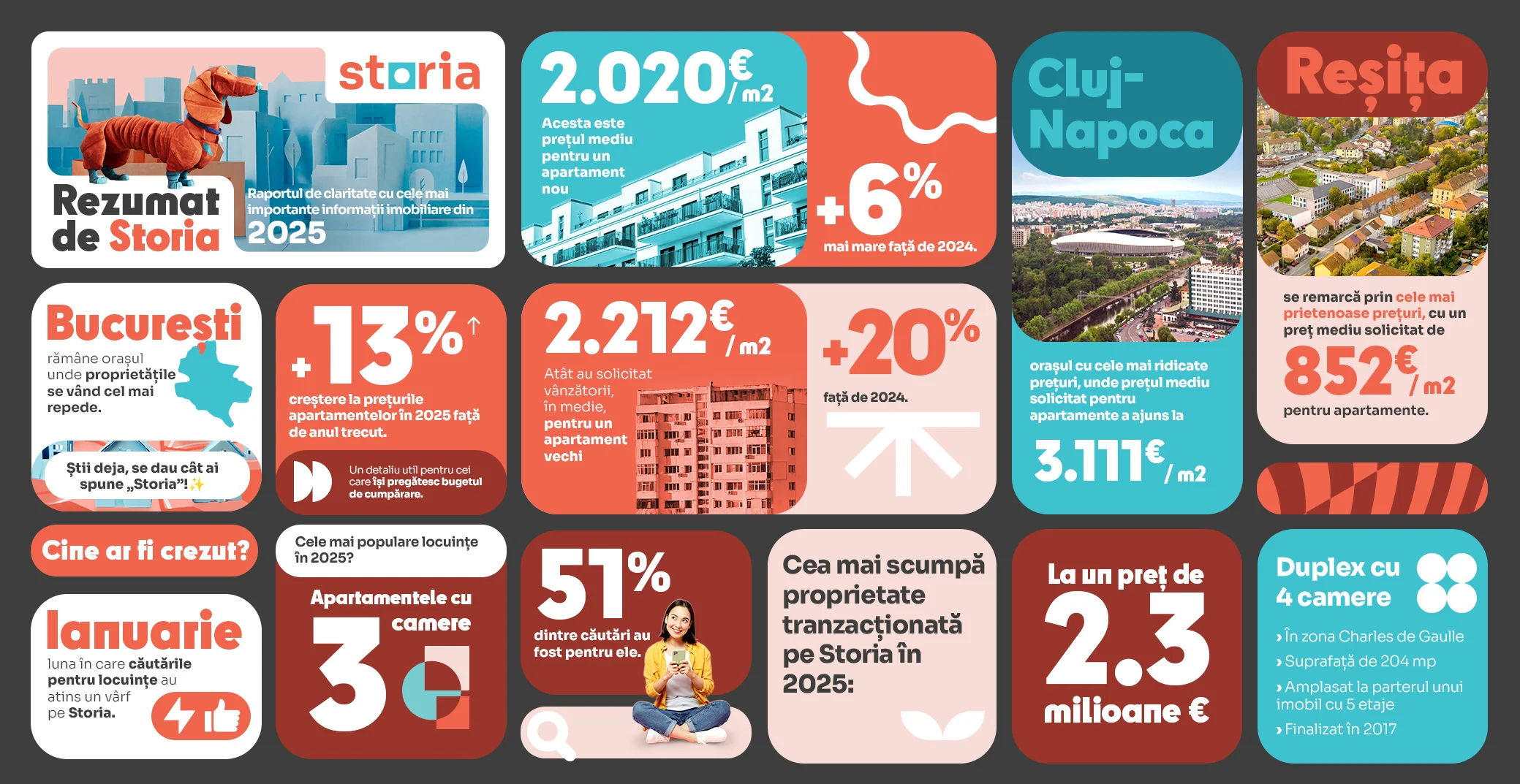 „În 2025, piața imobiliară a arătat că oamenii devin tot mai atenți înainte de a lua o decizie. Creșterea prețurilor nu i-a descurajat, ci i-a determinat să compare mai mult și să caute locuințe care răspund mai bine nevoilor lor reale. La fel ca în 2024, apartamentele cu trei camere se mențin printre cele mai frecvent incluse în căutări, semnalând o orientare constantă către mai mult spațiu și confort, iar Bucureștiul rămâne orașul în care proprietățile se tranzacționează în cel mai scurt timp. Prin acest raport, ne propunem să oferim o imagine clară asupra acestor evoluții și să sprijinim utilizatorii în procesul de informare și luare a deciziilor pe o piață tot mai complexă”, a declarat Monica Dudău, Head of Marketing Real Estate Europe, OLX Group (Storia și OLX Imobiliare în România).