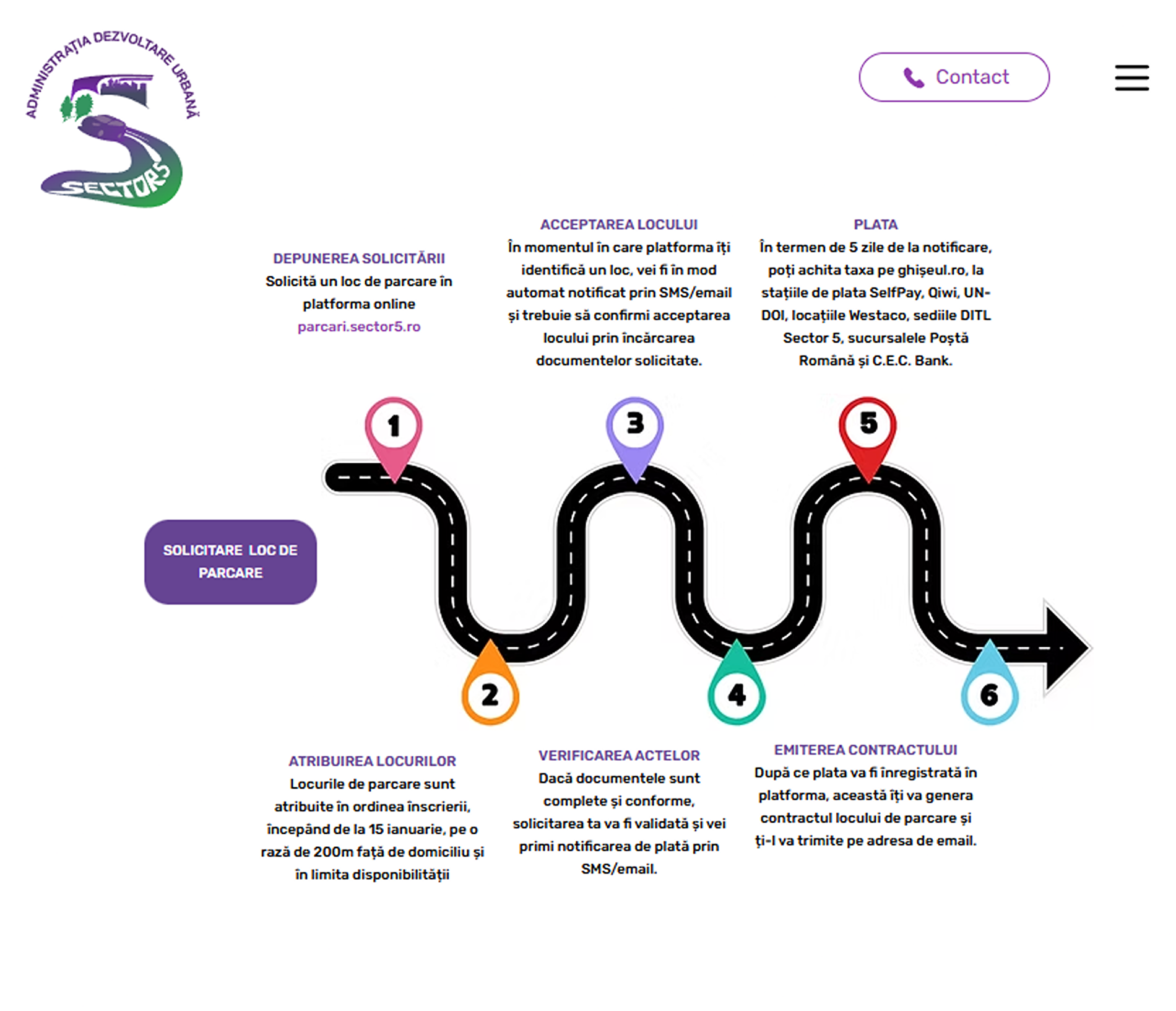 Platforma, accesibilă la adresa https://parcari.sector5.ro/map, permite atât completarea cererilor, cât și actualizarea informațiilor personale și vizualizarea situației cererilor deja depuse.